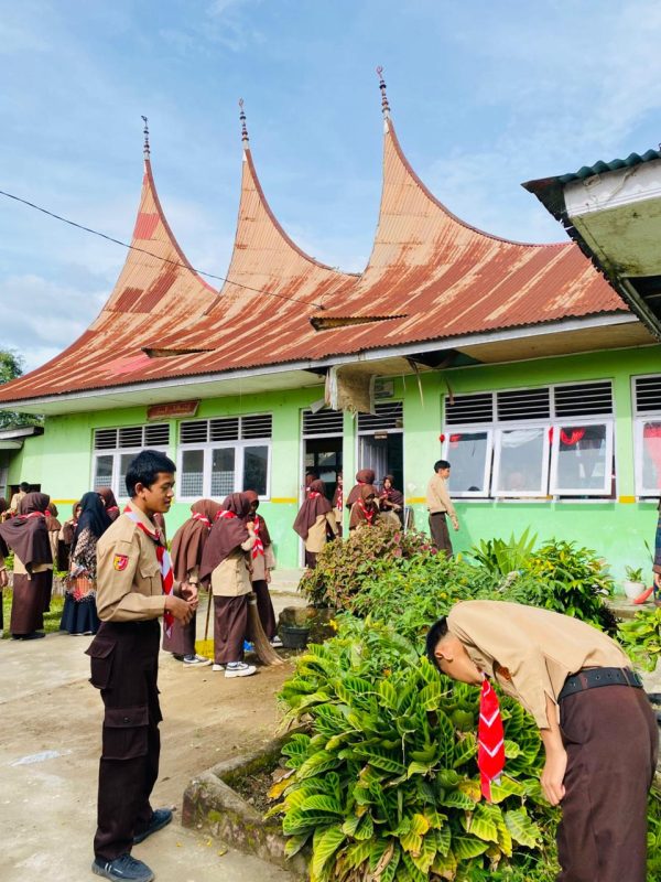 Rabu, 22 Oktober 2025 menjadi hari yang penuh kegiatan dan semangat di MTsN 5 Tanah Datar. Sejak pagi, seluruh guru, pegawai, dan siswa melaksanakan gotong royong bersama di lingkungan madrasah. Kegiatan ini bertujuan menanamkan nilai kebersamaan, tanggung jawab, dan kepedulian terhadap kebersihan lingkungan madrasah.
